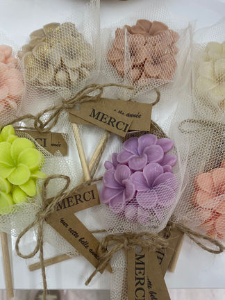 Comme les savons, les possibilités sont nombreuses : petits, grands, parfums, formes, dans un sachet ou plutôt dans des contenants en verre... Venez réalisez le sujet de vos envies pour le plus beau jour de votre vie ou pour offrir à vos clients ou salariés!